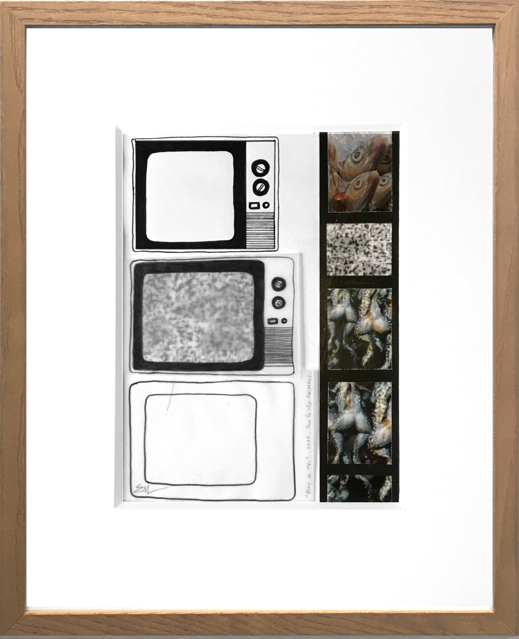Feutre sur papier calque et papier 90g, impressions, encre de Chine, colle.