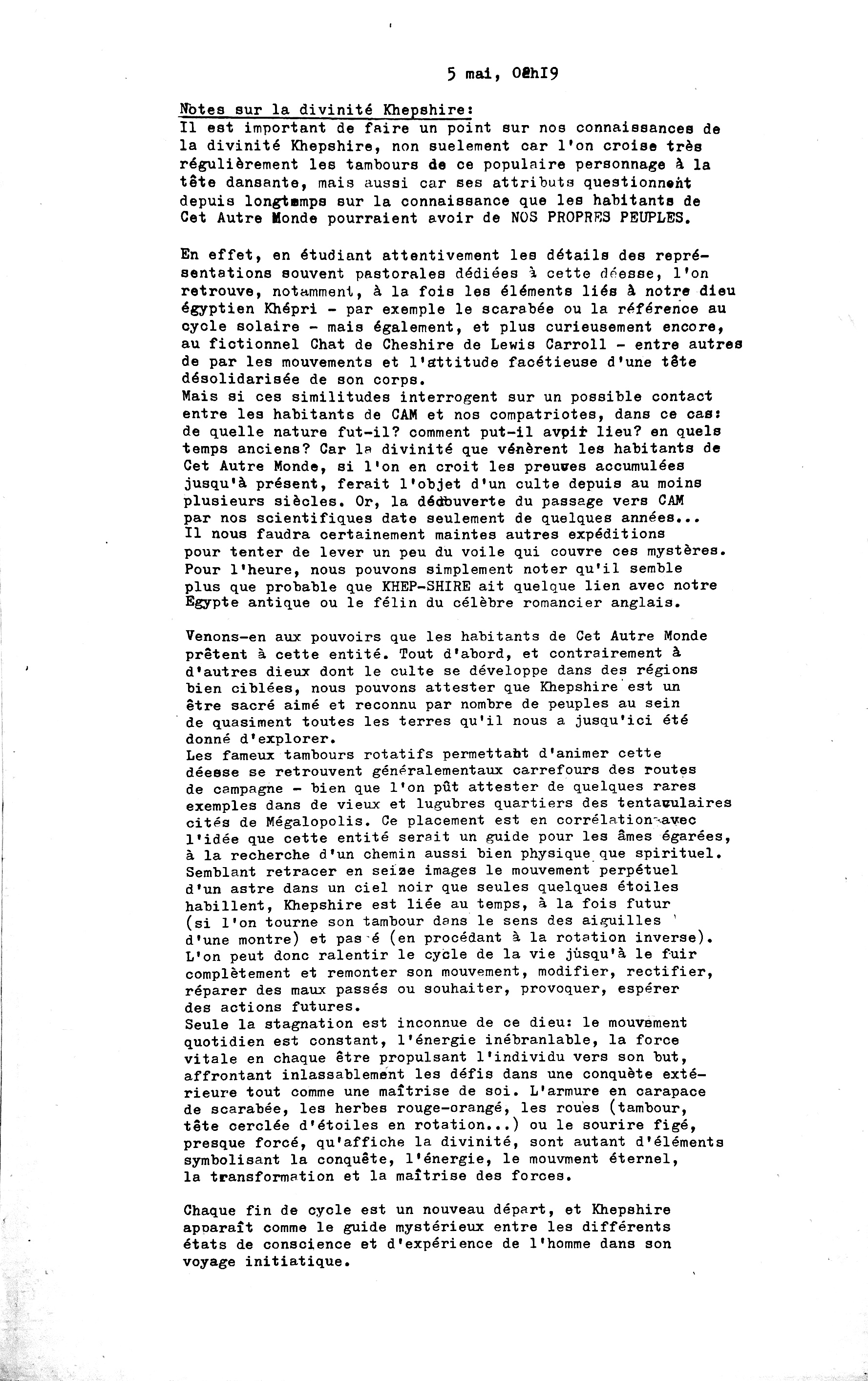 Many more expeditions will undoubtedly be required if we are to lift even a corner of the veil that shrouds these mysteries. For the time being, we can simply note that it seems more than likely that KHEP-SHIRE bears some connection either to our ancient Egypt or to the feline of the famous English novelist.
