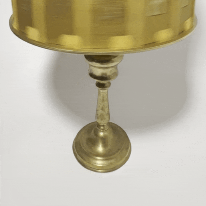 Photographies collées dans tambour en bois gravé. Acrylique, feuille d’or, cuir velour, acier, laiton, colle, poulie (métal et caoutchouc). L’ensemble monté sur un pied en laiton.