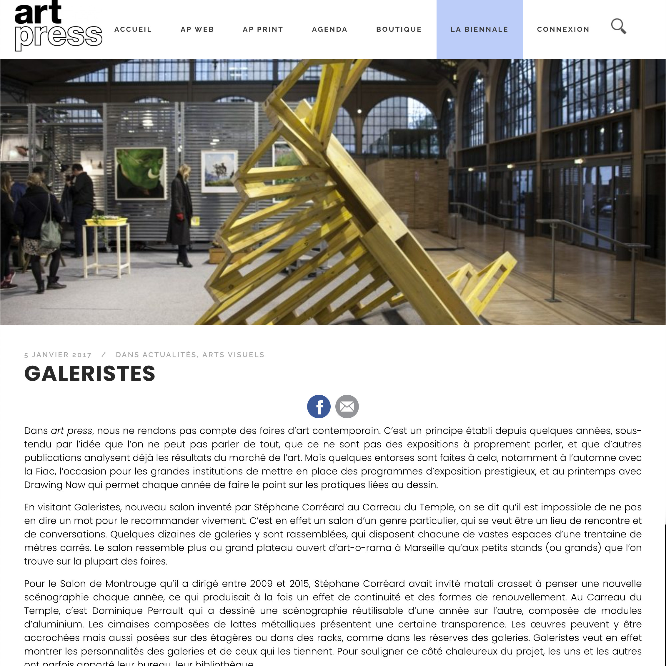 2017 : Article by Anaël Pigeat in ART PRESS. [photo CRYING ANGEL, exhibition “Galeristes”]