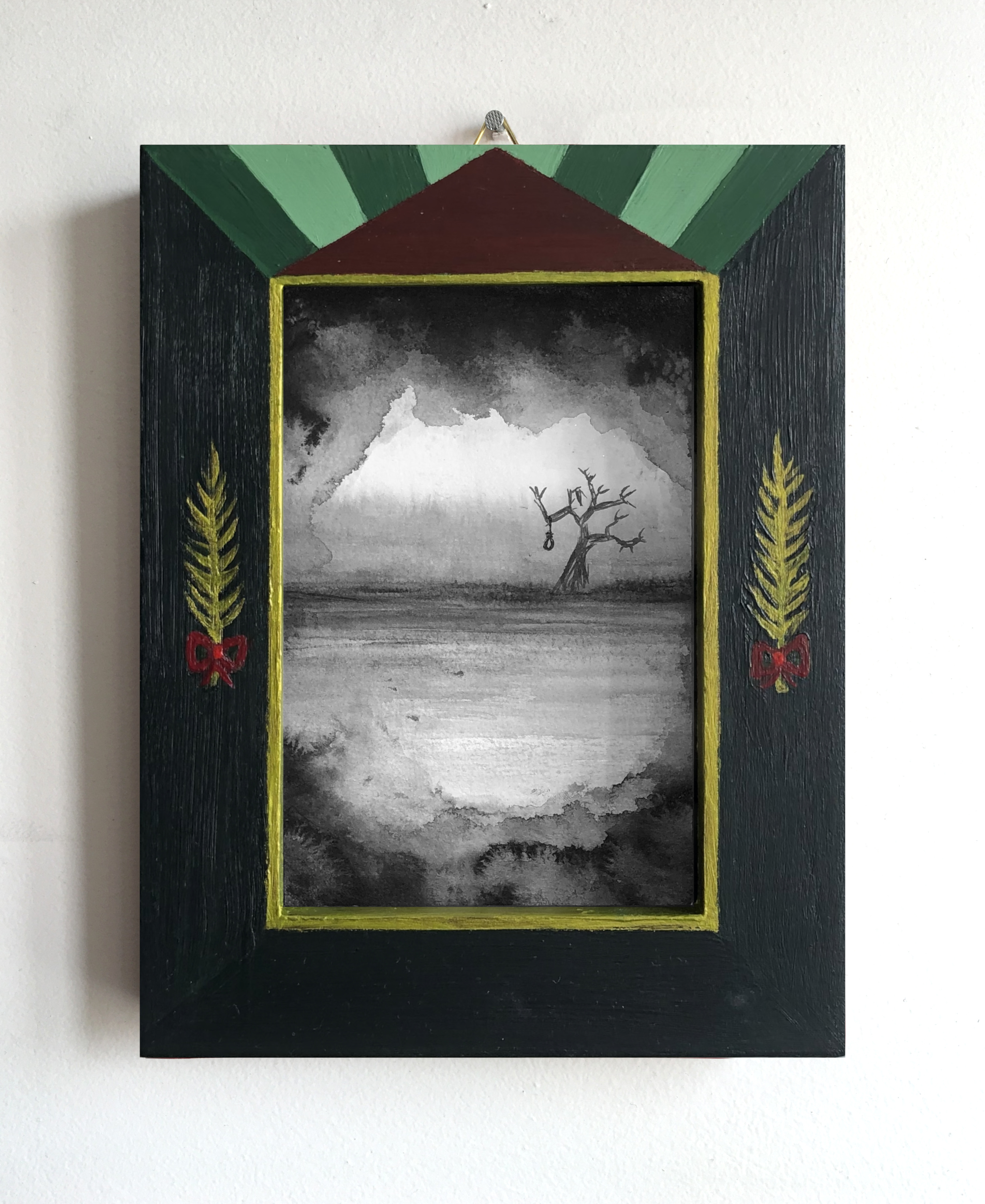 3 Indian inks on 224g paper mounted in 3 wooden hand-painted frames.